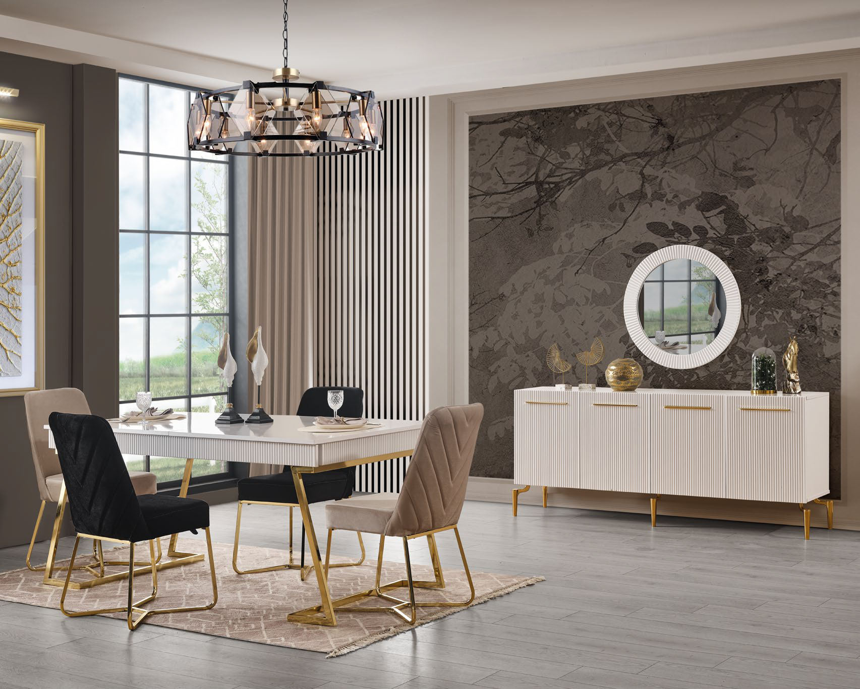 White and Gold It allows you to create the concept you are looking for in your dining room with the perfect combination of style.