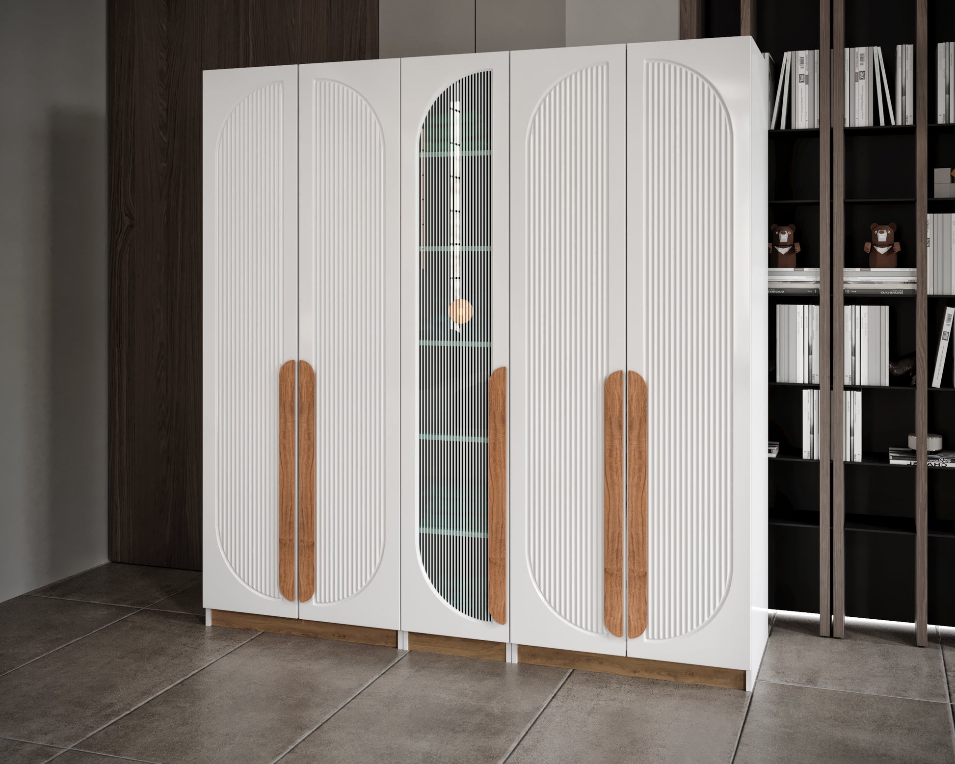 Our wardrobe consists of 2 detachable blocks, it can be adjusted to the size of your home, with 3, 4 or 5 doors, the price is reduced.