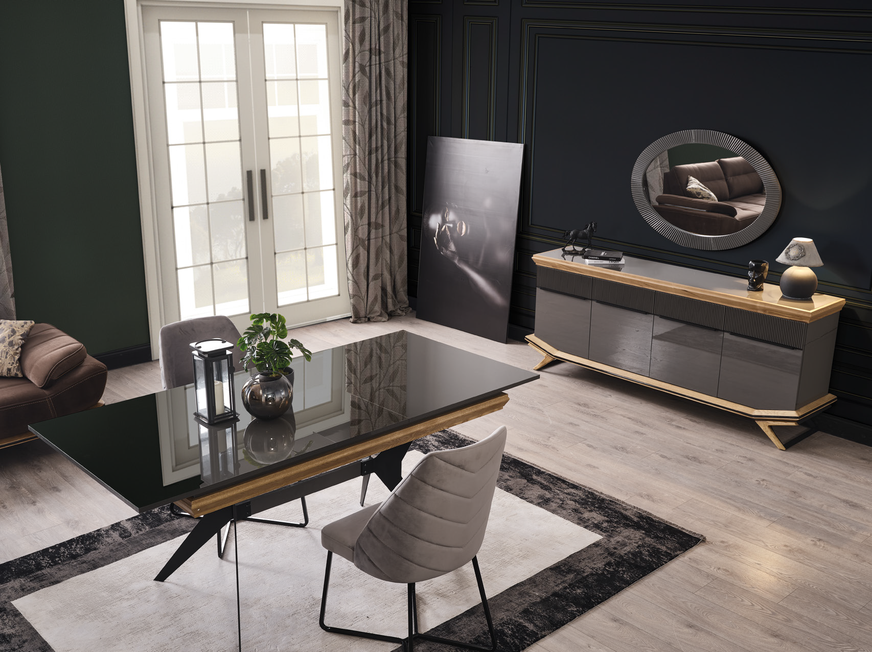 Anthracite Gray and Walnut It allows you to create the concept you are looking for in your dining room with the perfect combination of style.