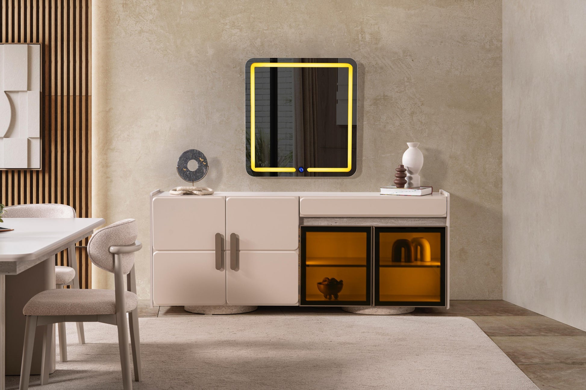 - Table, 6 chairs, console and mirror
