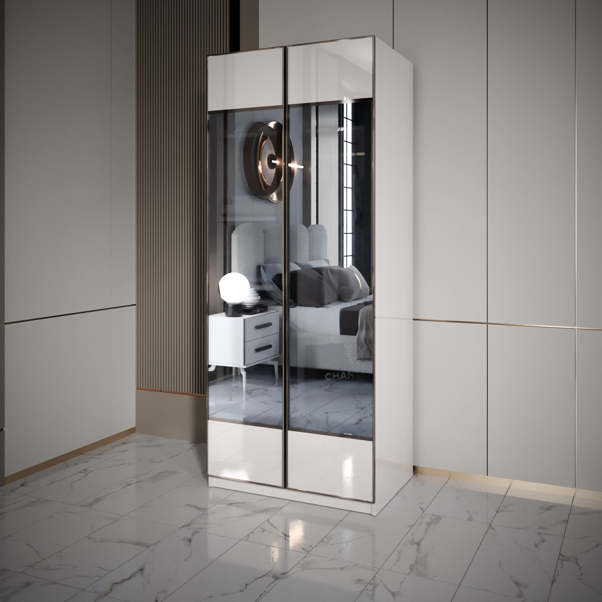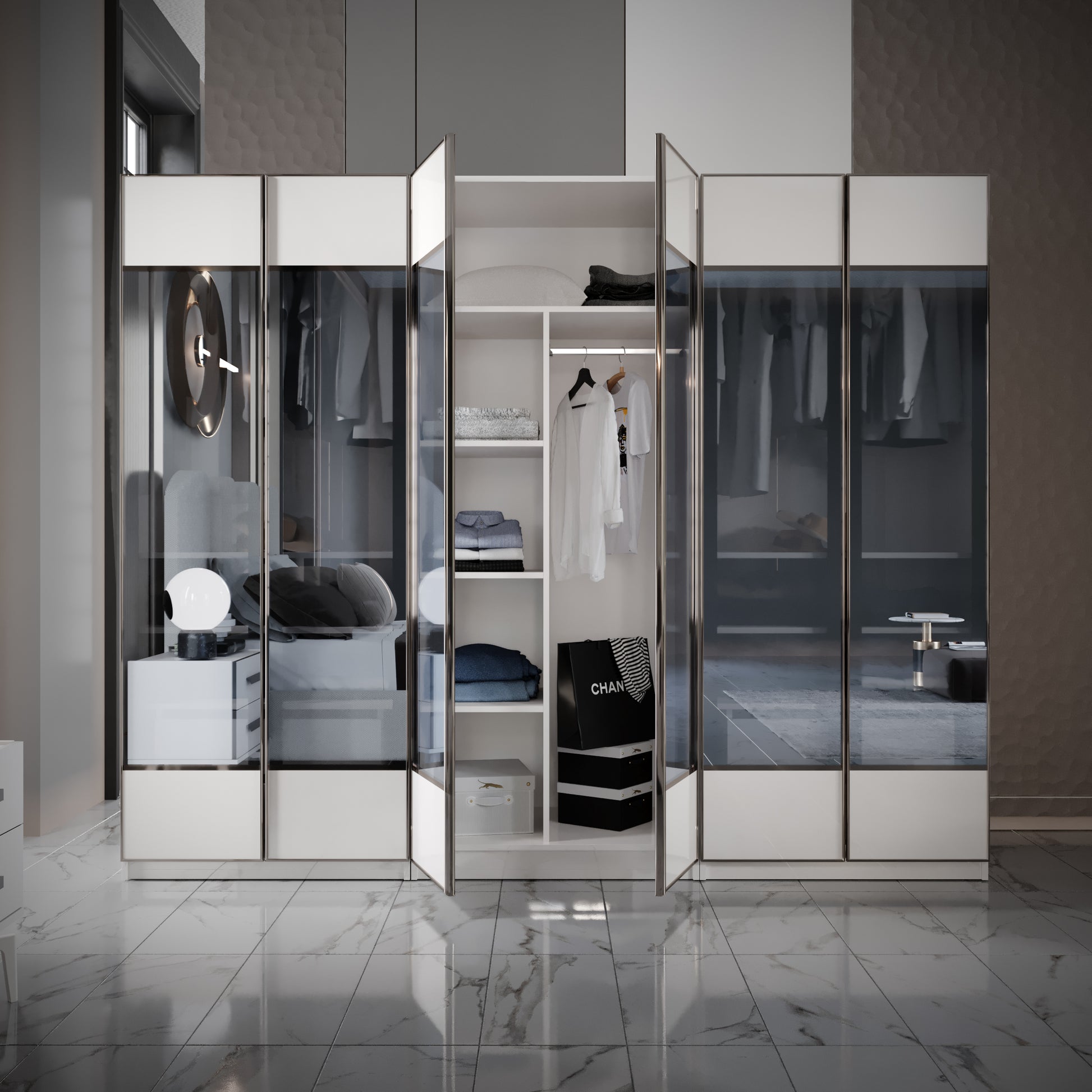 Our wardrobe consists of 2 detachable blocks, it can be adjusted to the size of your home, with 3, 4 or 5 doors, the price is reduced.