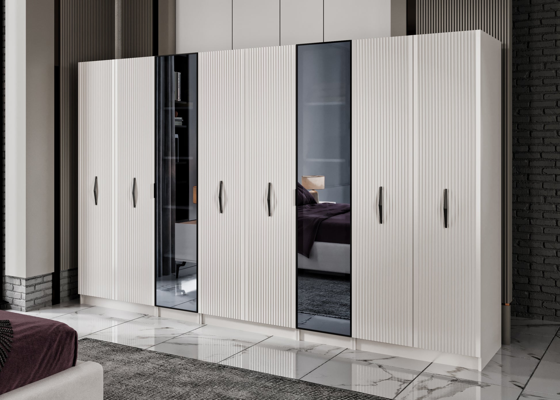Our wardrobe consists of 2 detachable blocks, it can be adjusted to the size of your home, with 3, 4 or 5 doors, the price is reduced.