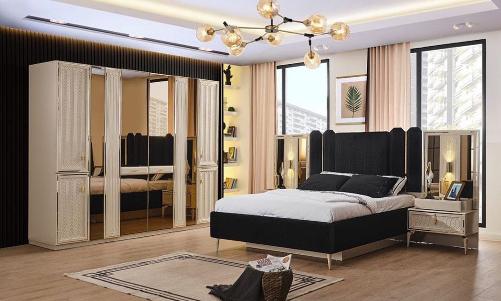 - Wardrobe, bed base, dresser, mirror, 2 bedside tables